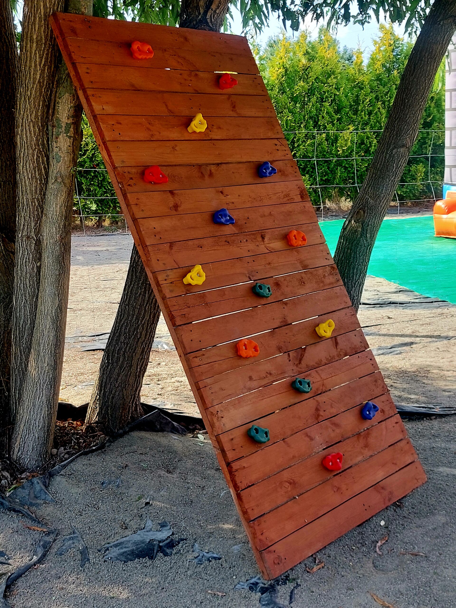 Micii exploratori pot să-și testeze abilitățile de cățărare pe peretele nostru de lemn, dotat cu prize colorate. Este perfect pentru dezvoltarea coordonării și a forței fizice.
