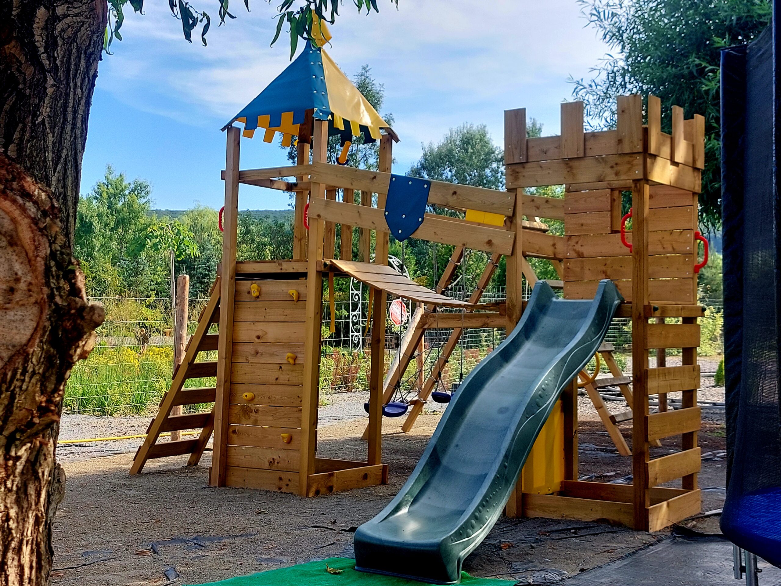 Lăsați imaginația să zboare în fortăreața noastră din lemn, unde cei mici pot deveni cavaleri și prințese. Cu tobogane și scări, această structură oferă ore întregi de joacă creativă.